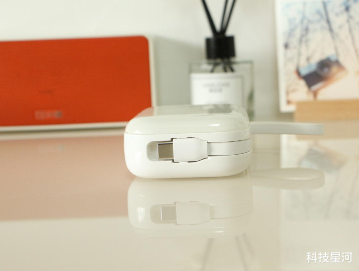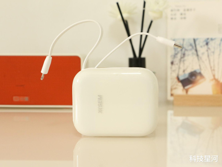 西圣PB-S自带的Lightning+Type-C双快充线,苹果、安卓手机、平板全面兼容笼罩,给手机、耳机等迁徙建筑补电变得绝顶省心。