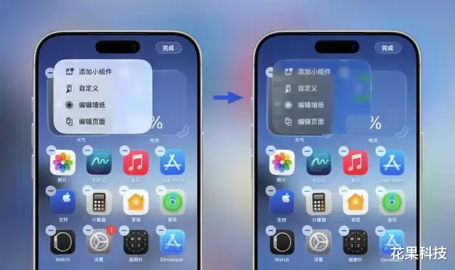 在主屏幕长按空缺处参预到桌面抖动气象,点击左上角的剪辑,当今剪辑菜单使用了愈加透明的液态玻璃后果。