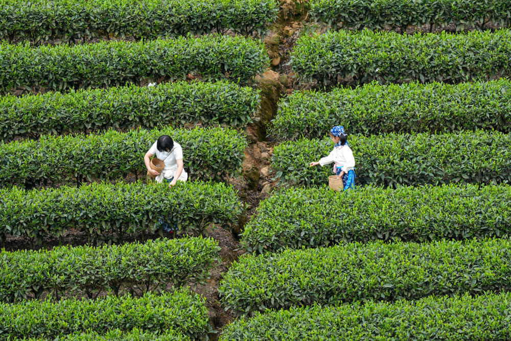 4月5日,东谈主们在四川省雅安市牛碾坪万亩不雅光茶园体验采茶。新华社记者胥冰洁 摄