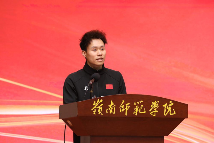3月10日,跳水奥运冠军、男人三米板“大满贯”谢念念埸应邀走进岭南师范学院音乐厅,登上该校第77期“行走的念念政课堂”,以“体育是一场莫得硝烟的干戈”为主题,为岭师和附中共600余名师生带来一堂饱含爱国情愫与拼搏精神的念念政大课。