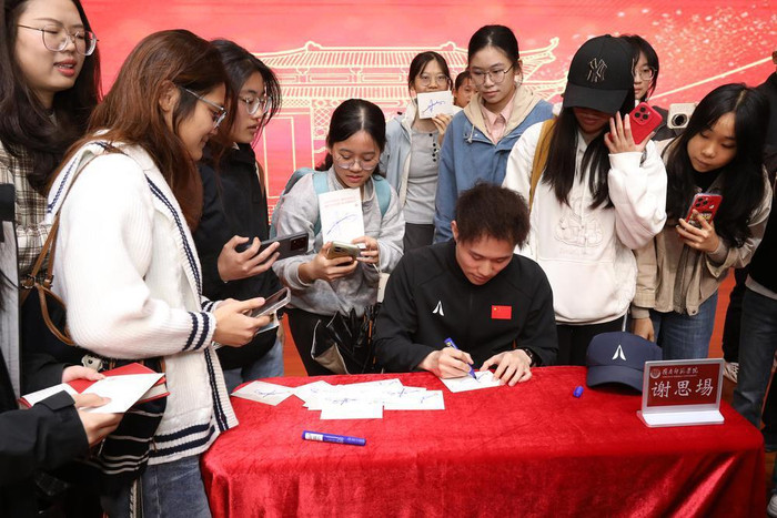 共享尾声,现场同学们列队与谢念念埸合影并签名眷顾,示意将以奥运冠军谢念念埸为榜样,把拼搏精神滚动为我方的行径,把爱国精神铭记于心,在东说念主生的赛说念上以坚韧信仰与实干担当,争作念新期间有为后生,在民族请问的征途上戮力冲锋。